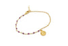 Pulsera decenario con Escapulario elaborada con piedritas naturales engarzadas a mano, combinadas con una cadena dorada que le aporta movimiento y brillo.
