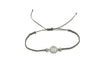 Pulsera de San Benito tejida ajustable con donas de zirconias al centro. Perfecta para usar sola o acompañar otras piezas, su diseño ajustable la hace cómoda y versátil, ideal para combinar con pulsera plana con donas zirconias.