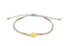• Diseño: Pulsera de hilo fino con detalles en dorado y tonos rosa, beige y gris.